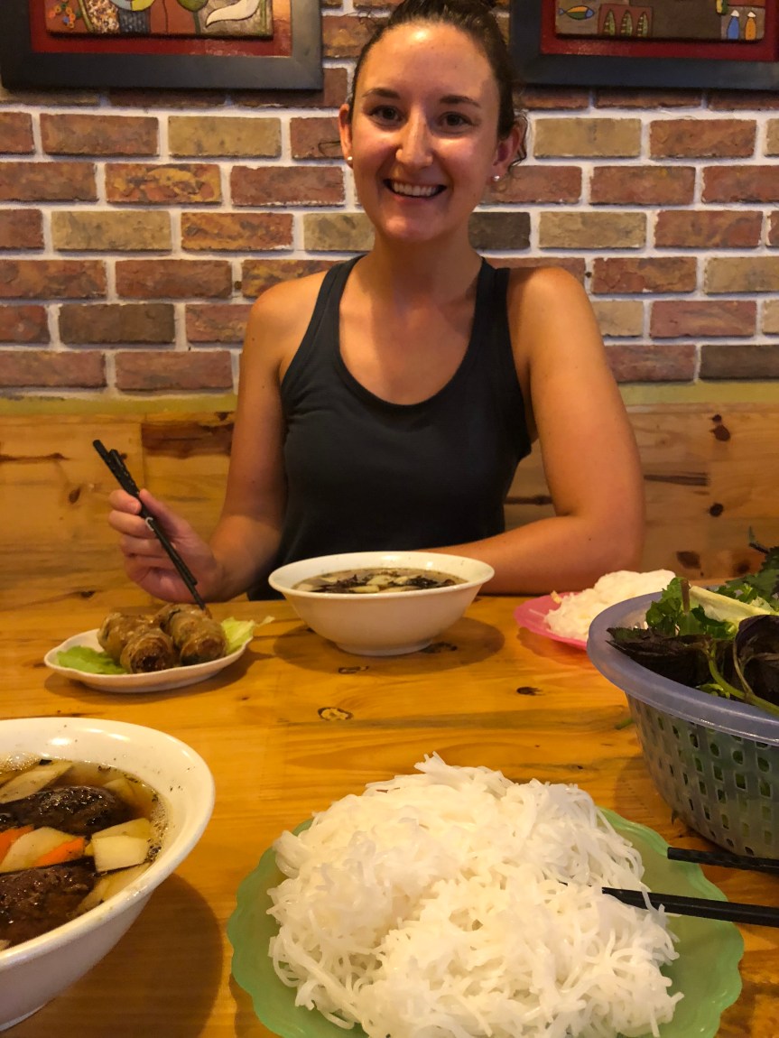 We learned that we love the northern Vietnamese dish Bún chả! We went to two different Bún chả restaurants, including the one where President Obama visited with Anthony Bourdain! We had some other Vietnamese dishes as well including Pho, but I think we got suckered into some tourist traps with not as good food. Since this was our first stop in Vietnam, we didn’t really know any of the language yet or the dishes (besides Pho), and we found that a lot of the restaurants didn’t have English signs or menus like they did in Thailand. So just to make it easier on ourselves, we only went to places with English, which are usually the tourist spots and probably not as tasty!