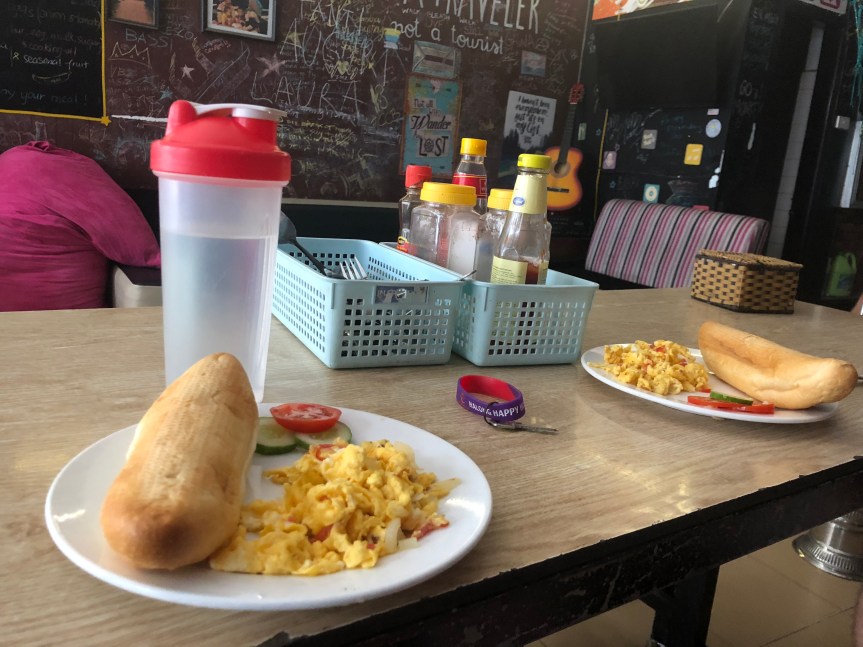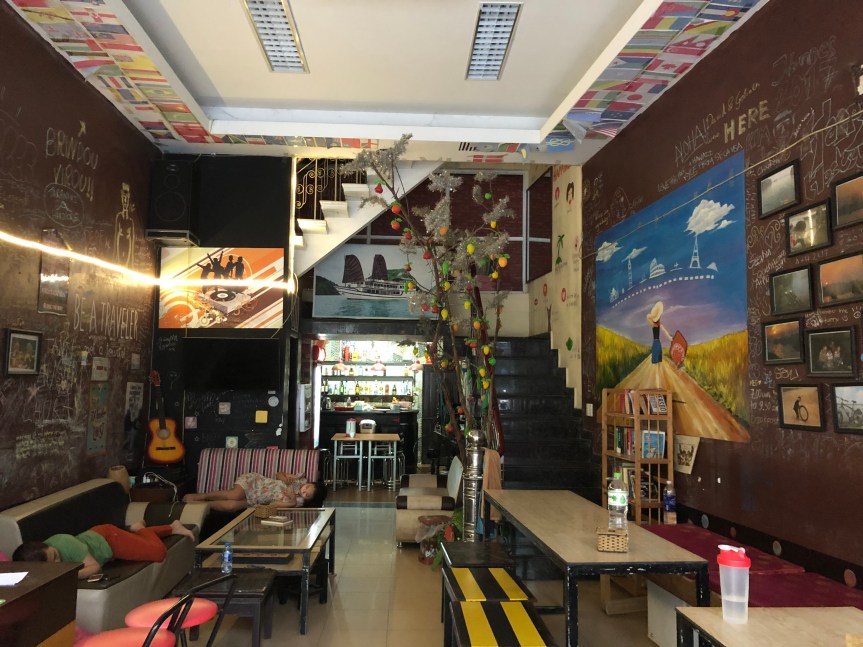 Our hostel was actually really nice and had a private room and private bathroom, which is the only reason we agreed to stay in a hostel in the first place. We got to hang out in the lobby and talk to the friendly staff and some other guests a few times. They also provided free breakfast every morning and one free beer at Happy Hour each day, which were awesome perks for an already cheap accommodation! The location was pretty good, in Ha Long City with plenty of restaurants, coffee shops, bars, and the local market nearby. However, we found out that we would have preferred to stay across the bridge in the Hong Gai area of town instead of the Bai Chay tourist area. Better yet, we’d really prefer to stay on Cat Ba island!