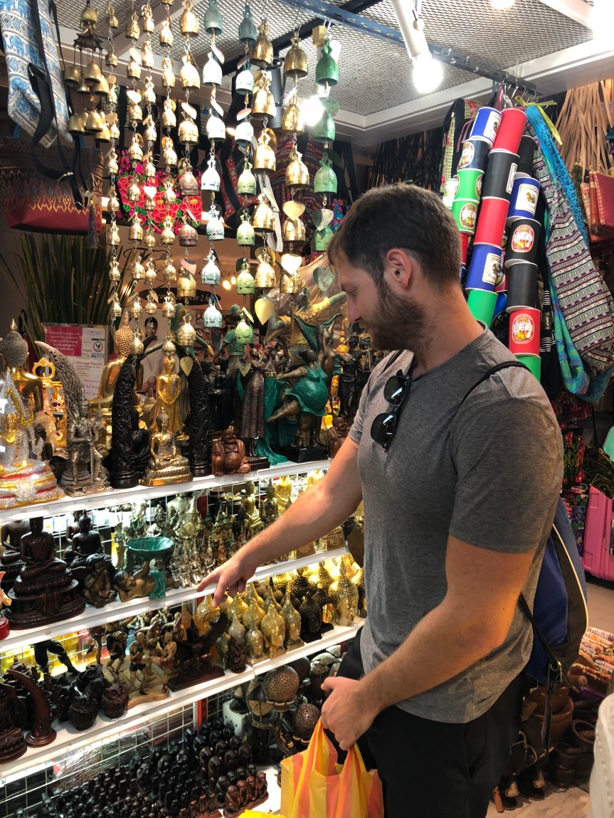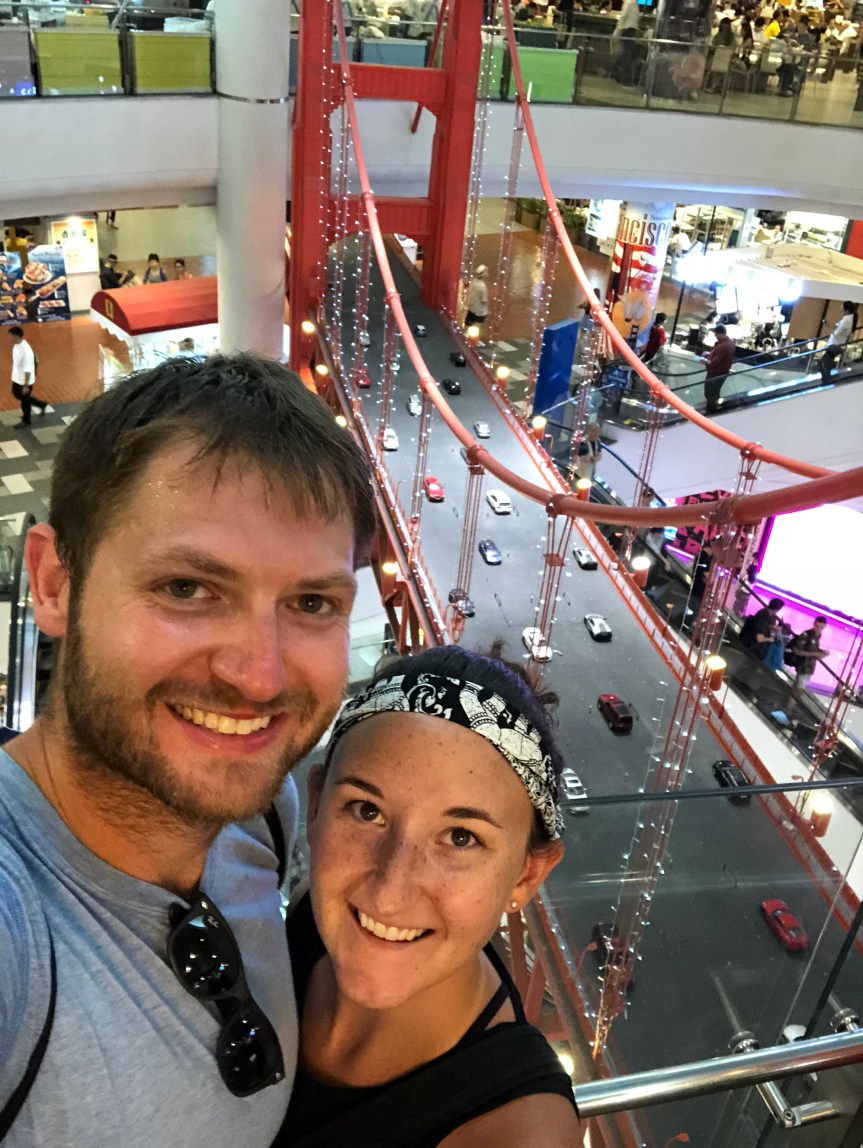 We did quite a bit of souvenir shopping in Bangkok, because this was our last stop in Thailand and second to last stop on the whole trip. There were lots of things I had been wanting to get the whole trip but couldn’t since we weren’t able to tote things around for 5 months. Plus, we needed to get Christmas presents for our families before we headed back home, so this was the perfect chance to knock out souvenirs and Christmas shopping all in one! We went to a couple night markets in search of souvenirs, but I didn’t really find what I was looking for there. After crowd-sourcing for some information, I found out that one of the major malls, MBK, was a lot cheaper than the normal malls and had a ton of souvenirs. We hit the jackpot there. It was like being at one of the markets, with cheap prices, lots of stuff, and haggling for even lower prices- but instead of being outside in the heat and humidity it was inside in the AC! I could’ve spent all day at that mall shopping, but Jared was over it after a couple hours, haha!