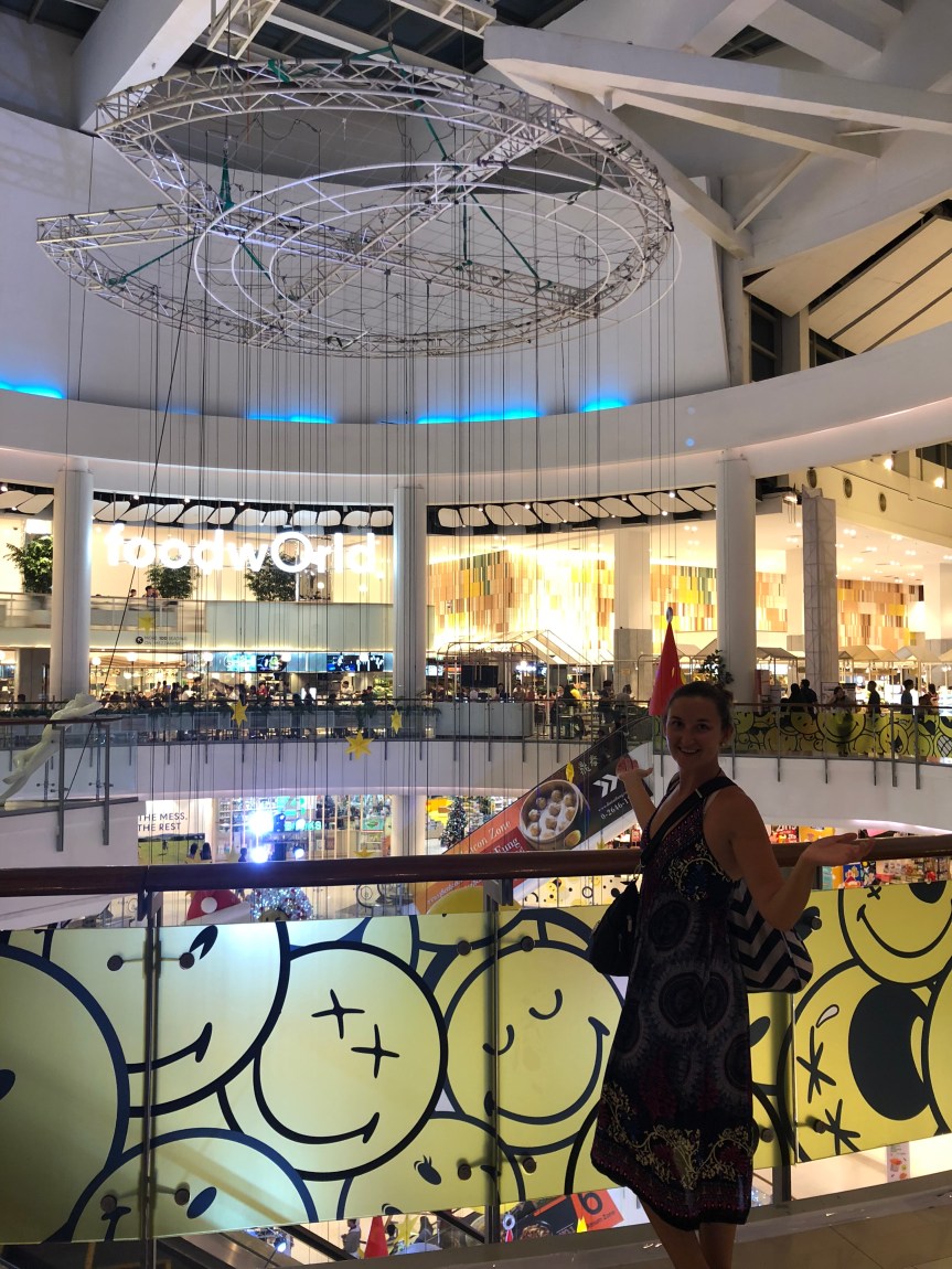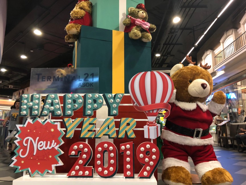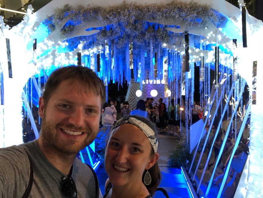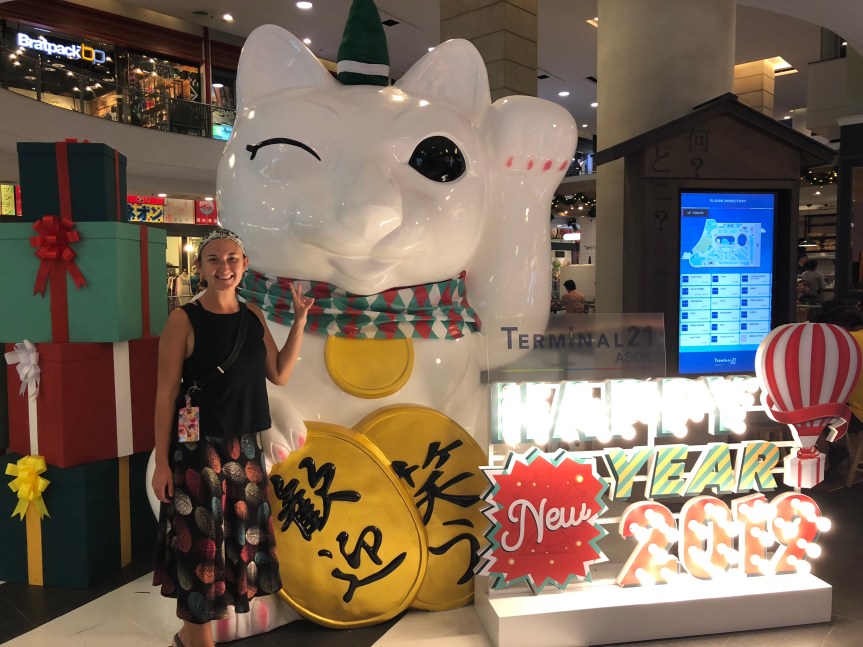 We also visited several other malls while in Bangkok. We felt like Bangkok was just one big mall. They were on every block, especially all along Sukhumvit Road/The Sukhumvit line on the skytrain. We enjoyed eating at the street food style food courts inside the malls, which we discovered in Chiang Mai earlier in our trip and saw all throughout Southeast Asia. They’re like street food stands with good food and low prices, but more sanitary and in the AC! The malls themselves are truly impressive, unlike any I’ve seen in the US. We don’t usually do much shopping there, we just enjoy walking around. One of them in Bangkok has themed floors, for example one floor is like a mini San Francisco, another Tokyo, and another London. Even better, we were there in December, so each mall had a spectacular Christmas display up. We saw so many amazing lights, trees, and decorations. It reminded me of being in NYC around Christmas, except extremely hot outside instead of freezing!