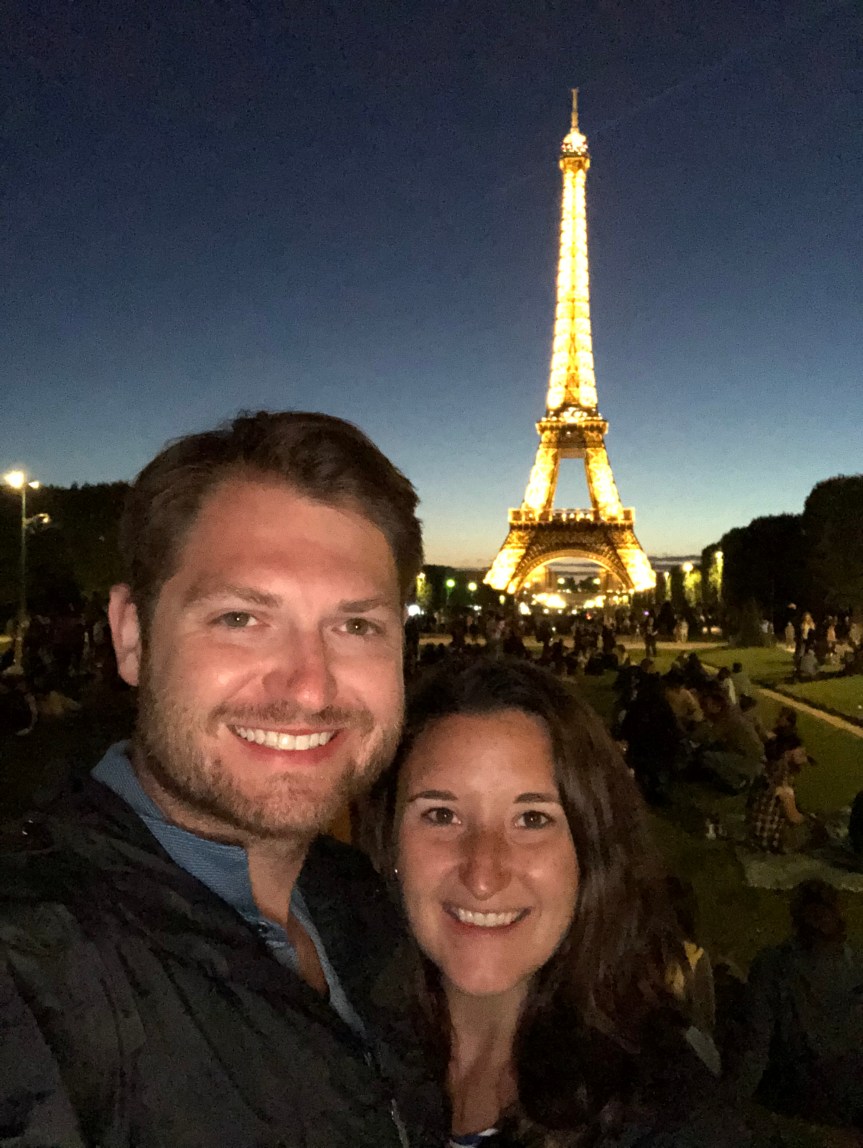 After our day excursion, I really wanted to get back to go to the Eiffel Tower at night. The “thing to do” there was have champagne on the lawn in front of the tower. We always laugh how each city has its “thing.” Usually there’s some thing that vendors will push on you, and here it was cold champagne they carried around in a bucket to sell to you on the lawn! But of course we know they’re jacking the prices up times a million, so naturally I bought a bottle at the grocery store on our way over instead! (I later realized I didn’t actually buy “champagne” but instead “cremant” ha- if you know about the rules to calling something Champagne you’ll understand my mistake!) This time of year, the sun was setting so late in the evening, so we basically had to hang around until 11pm to see sunset and then for it to actually be dark. But luckily this meant we got to see the full light show at 11 up close! Also, we saw a marriage proposal during sunset! How romantic! Sadly, no, not our own..ha!