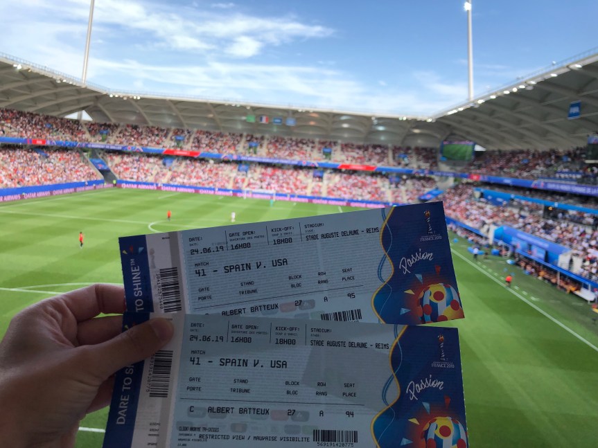Upon arriving in Reims, we didn’t really have any plans yet, except to check out a champagne cellar of course! To our great surprise, when we got there, we learned from our host that the Women’s World Cup was happening in France (we were seriously out of the loop), and that the UNITED STATES’ team was playing THAT DAY against Spain IN REIMS! Right down the street! We literally had no idea. So, we decided, why not pop by the stadium and at least see/hear it from the outside? Well even more to our surprise, we found out they were selling super cheap “obstructed view” tickets for only 13 euros! So, on a whim, we found ourselves with what actually turned out to be awesome seats to watch the US women’s soccer team play (and beat!) Spain in the World Cup! What an amazing experience that was! Sometimes we have our days really planned out and scheduled with tourist activities, and other times we don’t have any plans. This was an occasion where we were so glad we didn’t have any plans and were able to take advantage of this spontaneous and awesome event!