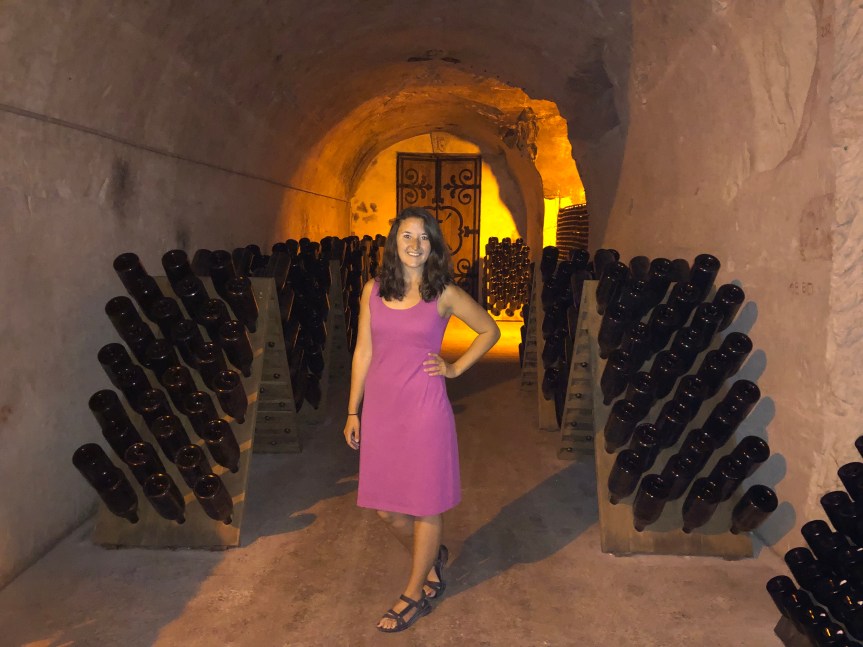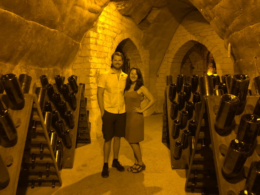 How do you top that experience, right? Ha! So besides that, we did some touring around the small city of Reims, and we did visit a couple of Champagne “Houses.” We took a tour of the “chalk cellars” at the Taittinger House and learned a little about the champagne making process. This was an interesting experience, but we actually didn’t think the tour was worth the cost. We heard later from friends that they thought some of the other cellar tours in the region were more worthwhile. But this one was a good choice for us at the time because it was just within the town and we could walk there. In addition to the tour, we tried some other champagne at G.H. Martel & Co in their tasting room. I love champagne, so although the cost-benefit ratio wasn’t great in Jared’s eyes, I still really enjoyed the champagne!