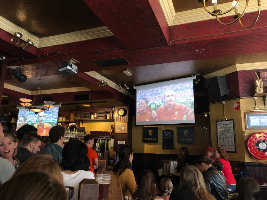 Also while we were there, the Women’s World Cup finals were on, and guess who was playing – The US vs The Netherlands! We really had such good timing with the World Cup, considering we previously had no idea it was going on, haha. We got to watch the US play live when we were in France (against Spain), then we got to see them play The Netherlands in the finals on TV, while in the Netherlands! It actually turned out not to be as fun as we thought being there though, because the US blew the Netherlands out of the water. So even though we were at a lively pub and everyone was decked out in their Netherlands gear, once their home team started losing, it was utter silence in the bar. We definitely didn’t want to cheer too much or appear too excited when the US won!