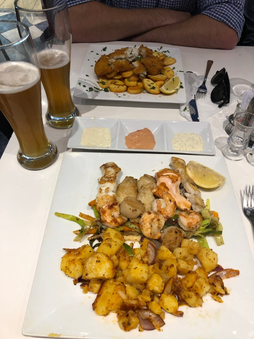 There are only a couple positive things I can think of during our stop in Hamburg. One was visiting the botanical gardens, which were a nice oasis in the middle of a concrete city. The second was a really good seafood meal we had. We learned that in Northern Germany, there are more seafaring people, so they don’t have the “Bavarian” type food (meat, potatoes, huge mugs of beer) like we imagine in the south. So, we did find a great local seafood restaurant at a reasonable price, and we got to sit next to some locals who were quite friendly! This made for an enjoyable dinner on our last night there.