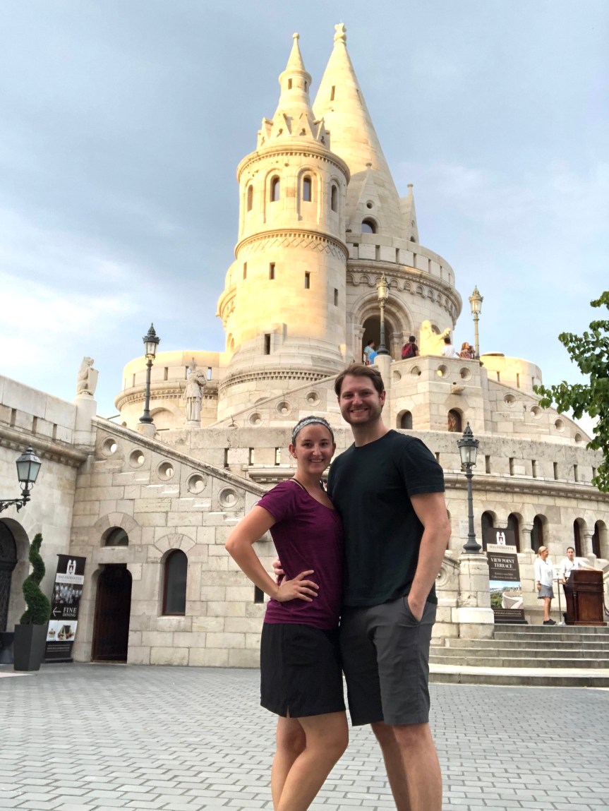 Despite all the hassles of the day, we’re so glad we didn’t skip Budapest! It ended up being such a beautiful city! The architecture was amazing, and again reminded us of parts of Western Europe, like London and Paris, but smaller. The Fisherman’s Bastion area was a major highlight, with such beautiful architecture and amazing views. The Hungarian Parliament building was amazing, both during the day and at night! It reminded us of Westminster Palace in London, and it was positioned so beautifully along the riverfront. We climbed and climbed and climbed so many stairs to reach the Fisherman’s Bastion from where the train dropped us to the West (before we knew there was an elevator!), and then we went down to riverfront level, before climbing stairs upon stairs upon hills upon stairs to get back up to the Buda Castle (before realizing that you could have accessed it from the Fisherman’s Bastion while you were already up there!). Ha! We also walked across the pedestrian bridge from the “Buda” side to the “Pest” side, and back again to the Buda side later. We ate ice cream shaped like a rose and the local Hungarian street food “langos.” What an exhausting but fun first half-day we had in Budapest!