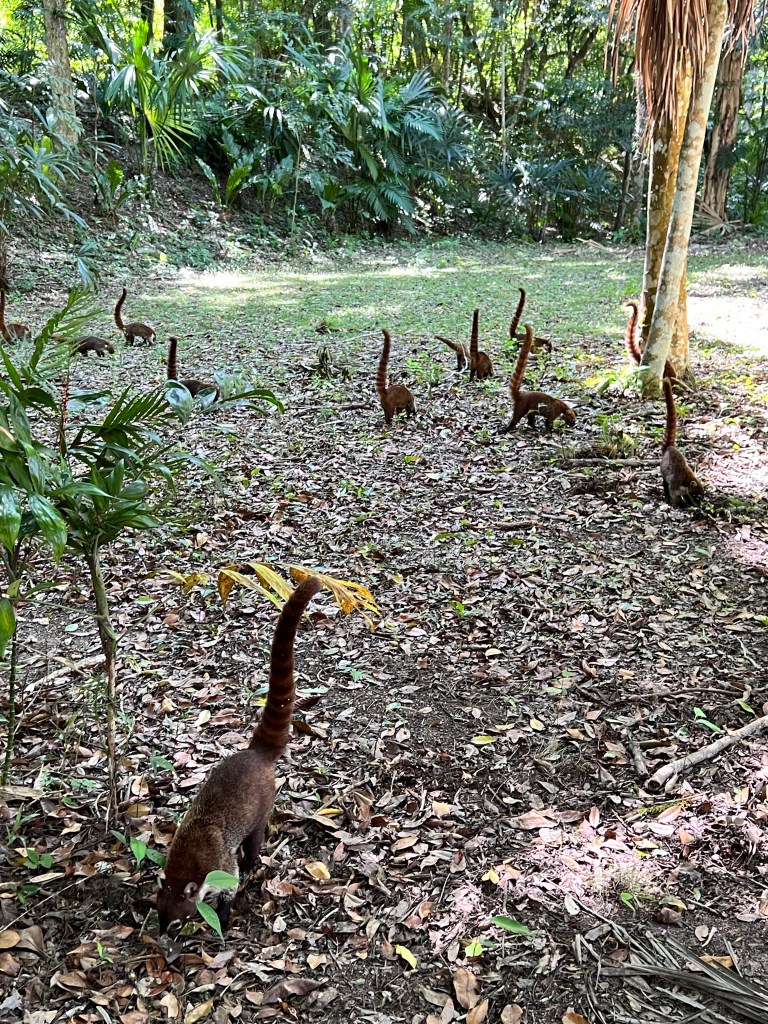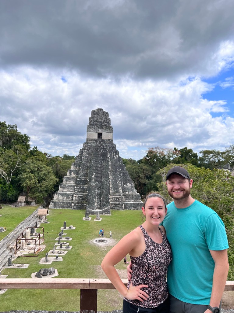 After Lake Atitlan, we made our way back to Guatemala City to catch a flight to Flores, Guatemala to go visit the Tikal Mayan Ruins there. In 2021, we had toured a few Mayan archeological sites throughout Mexico, so it was neat to see a different site in Guatemala. The ruins in Tikal are really in the jungle, so part of the day it was like going on a nature walk/hike, and we also saw many wild animals, particularly dozens of coatis. Many of the pyramids at this site are not even excavated yet and just look like hills. It was amazing to us that you would never even know with the naked eye that there are huge structures under the “hills.” We enjoyed our stay in the cute little town of Flores as well which had some beautiful views and sunsets.
