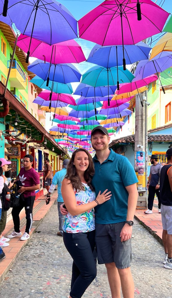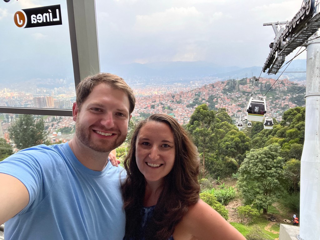 Our first stop was Medellín, Colombia. The city was surrounded by beautiful mountains, and we had a great skyline view from our Airbnb apartment. Unfortunately we did find that the city center was very dirty and had a lot of problems with homelessness and drug abuse. This seems to be more of a trend in our travels since COVID, even in the major US cities we’ve been to on our road trips. We unfortunately found that Colombia was one of the countries where we felt least safe in our travels so far. In fact, this was the only place that we’ve traveled so far in over 40 countries where one of us was very nearly pickpocketed. Jared actually felt someone’s hand in his pocket, with their hand around his phone, while we were on the metro. Luckily he grabbed the person’s hand and squeezed it, and they let go and did not get the phone. This happened during rush hour and as we were exiting a packed train, and we weren’t necessarily being as vigilant as we should have been. We are well aware that this type of crime can happen anywhere in the world, and we are actually very fortunate it has never happened to us before, or after, this (so far). But, it definitely contributed to our overall feelings about Colombia.