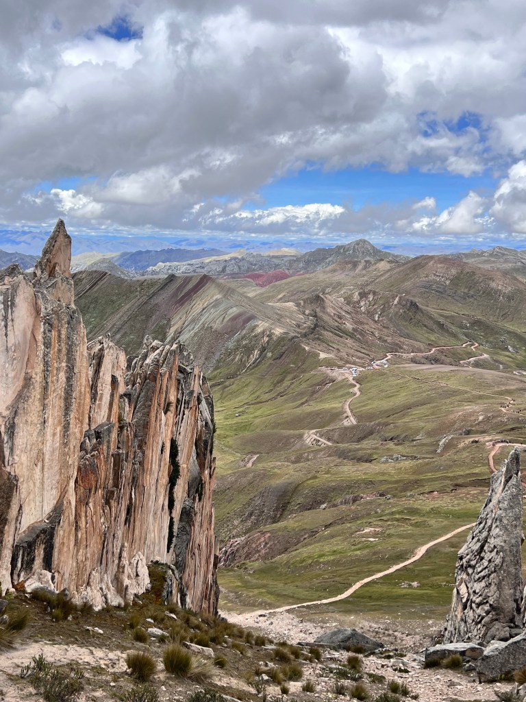 Palccoyo is still over 16,000 ft elevation, but the hike to get there and walking around the area is a lot easier than the hike at Vinicunca, so we weren’t upset about that. We still had an awesome time and got to see some stunning views at Palccoyo!