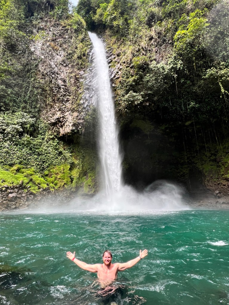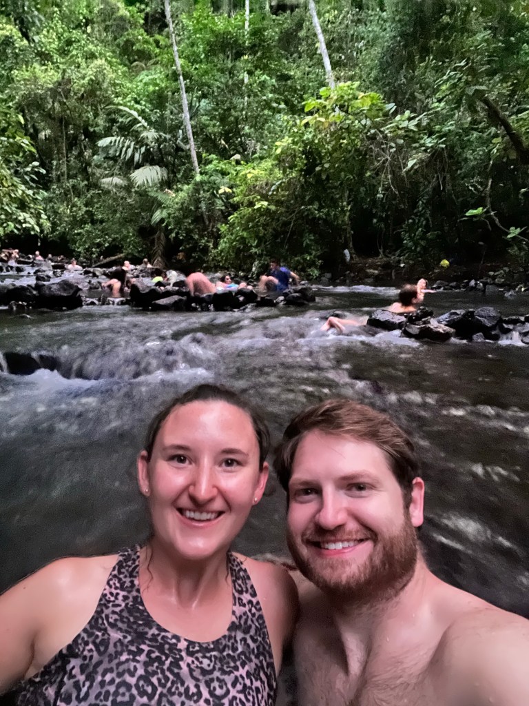 We basically did one big adventure day where we hit all the highlights in the La Fortuna area, including: La Fortuna Waterfall, hiking at Arenal Volcano, exploring the jungle at Arenal Hanging Bridges Park, and going to the hot springs (hot river). This was a really fun day tour and we experienced a lot! Besides that, we mostly hung around the Airbnb and walked around the little town of La Fortuna. We did enjoy some good food there as well!