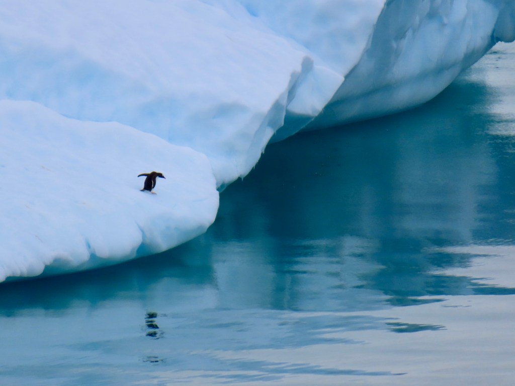 As we approached Antarctica, we started seeing lots of really cool icebergs. The captain even took a slight detour off our route to go to the location of the world’s largest iceberg at the time (called “A23a”). That iceberg was at the time approximately three times the size of New York City! Insane! So realistically it just looked like an ice-covered land mass as far as our eyes could tell, but evidently it was free floating. Aside from this, we saw more icebergs than we could count that appeared “huge” to us but that we could see all sides of. They were so interesting to see in all different shapes and sizes! We also saw lots of icebergs with penguins on them! It was so unreal! (You usually had to use binoculars to tell that they were penguins because they just looked like little black dots on the massive ice!) In addition to penguins, we saw many whales, sea birds, and other wild life.