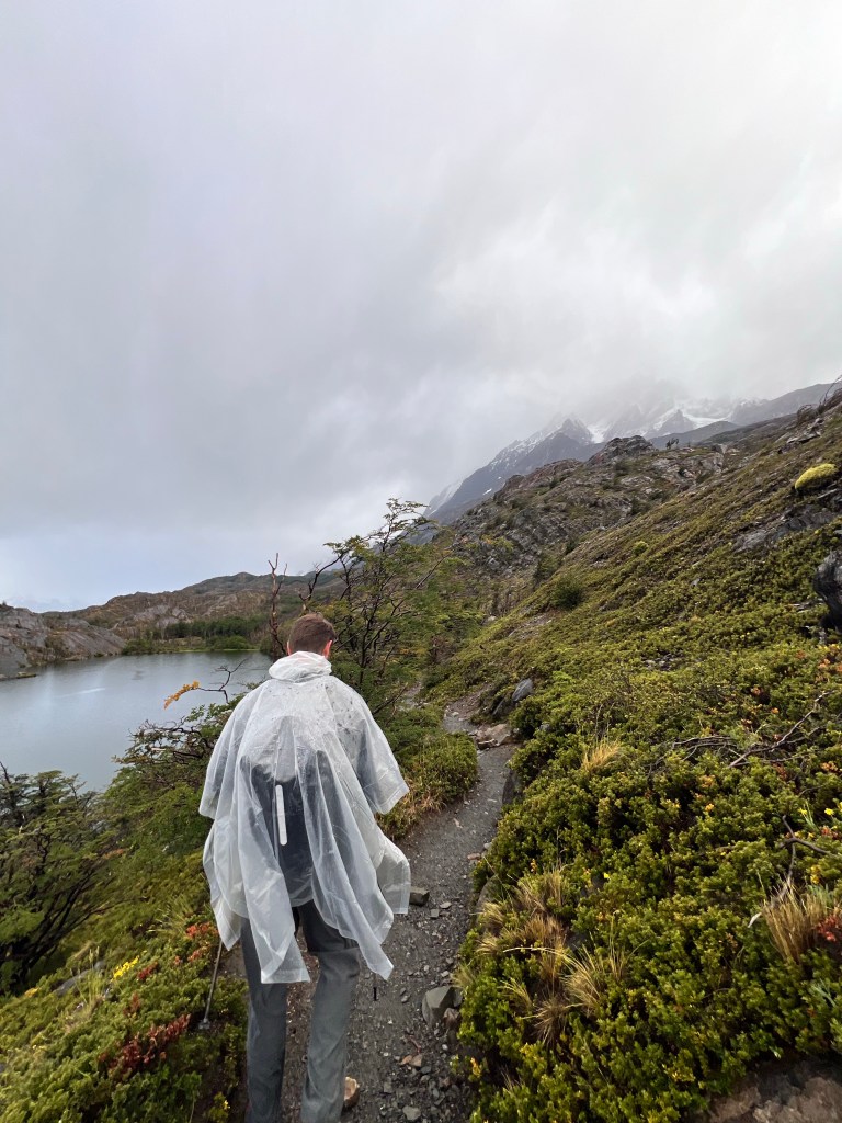 Even though the weather didn’t hinder our plans too much, we did encounter the strongest winds we’ve ever experienced on the return hike from the Towers. We were literally clinging to a tree to prevent getting knocked over, and at one point we had to crouch really low to make it safely across this section with an exposed drop off! Otherwise the weather was fairly sunny and nice on the first two day of hiking. But on the third day it was rainy and foggy (and somewhat windy) on our way to Glacier Grey. Luckily it didn’t stop us from making it there and back, but it’s always a bit unpleasant hiking in the rain!