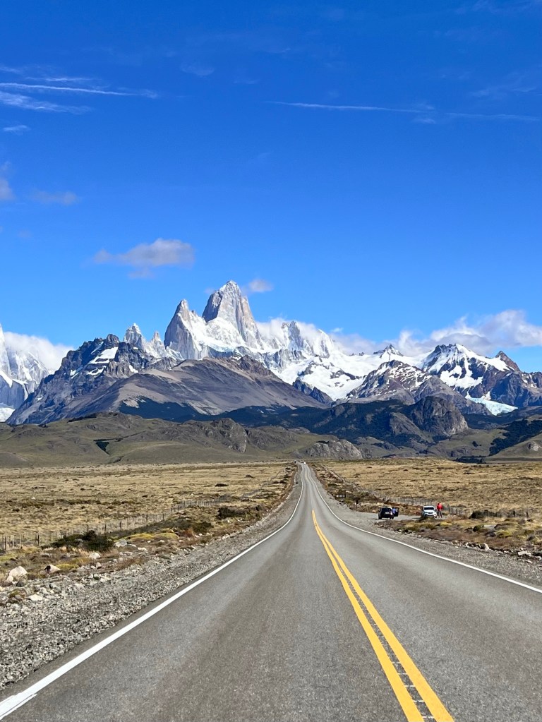 Then to our surprise, as we checked out and started our drive out of town, we stopped at a viewpoint just outside of El Chalten to see the best view we’d seen yet of the mountains! It was completely different than the day we arrived when we couldn’t see the mountains hardly at all! The whole drive back I was staring out the rear window of the car in awe of the views!!