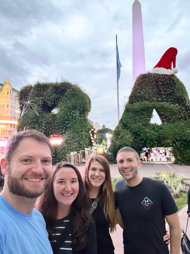 We flew out of the US on New Year’s Eve, so we were in the air when it became 2024, and we arrived January 1st! We weren’t sure about flying on New Year’s Eve but it turned out to be an awesome experience. We each got a full 4 seat middle row to ourselves because the flight was so empty which meant a were able to sleep well on the overnight flight. We met our friends in Buenos Aires, Argentina to start the trip, which is where the cruise for Antarctica left out of. We spent a couple days there to allow a buffer in case of any travel delays to ensure we wouldn’t miss the cruise. Fortunately though we didn’t have any delays at the start of the trip, and really we didn’t have any major delays or hiccups the rest of the entire trip either! This was such a relief after our 2023 Europe Honeymoon trip where we had SO many flight issues and delays!